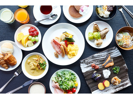 朝食は、和食・洋食はもちろんのこと、中華粥やアジア各国の日替わり麺など、約50種類のビュッフェメニュー。