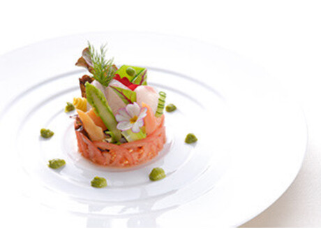 日本の食材を使ったフランス料理を提供しており、鏡智行シェフが国内各地の生産地に足を運び、食材を厳選しています。